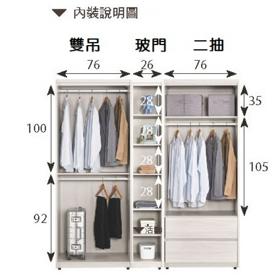 A1032-1 羅恩8.4尺組合衣櫥 全組 附活動隔板*4$37600