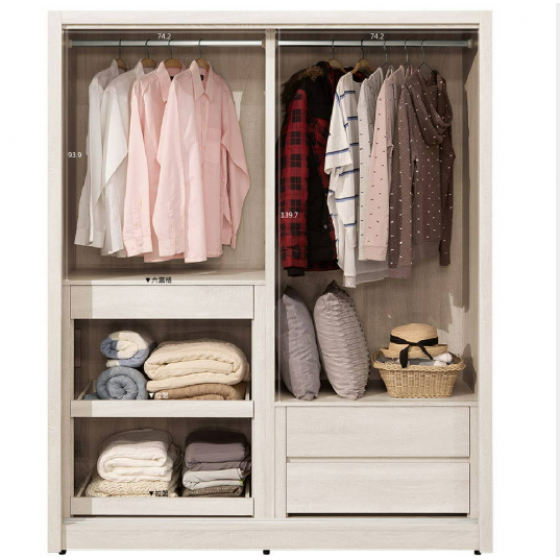 091-2 海芋5.2尺推門衣櫃 門片全為F3低甲醛防蛀木心板 本衣櫃可另加180度拉門式內鏡$19400