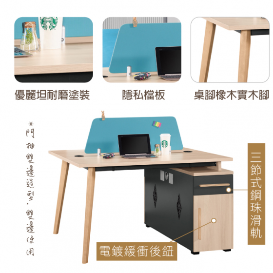 A1575-1 勞倫斯二人辦公桌 門抽雙邊造型 雙邊使用$9900