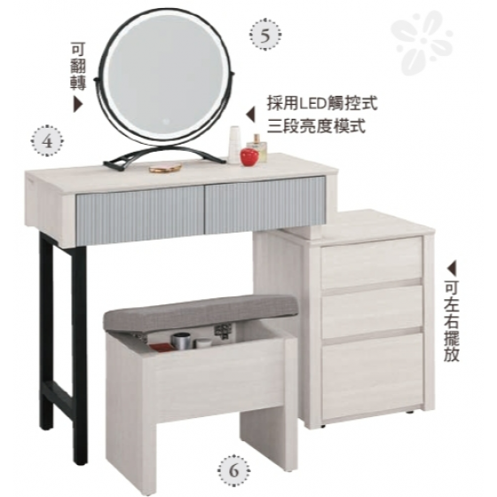 A1041-3 喬倫斯2.7尺伸縮化妝台 全組 含椅 可左右擺放$12300