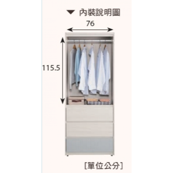 A1046-5 喬倫斯2.7尺被櫥式衣櫥 三抽單吊$16400