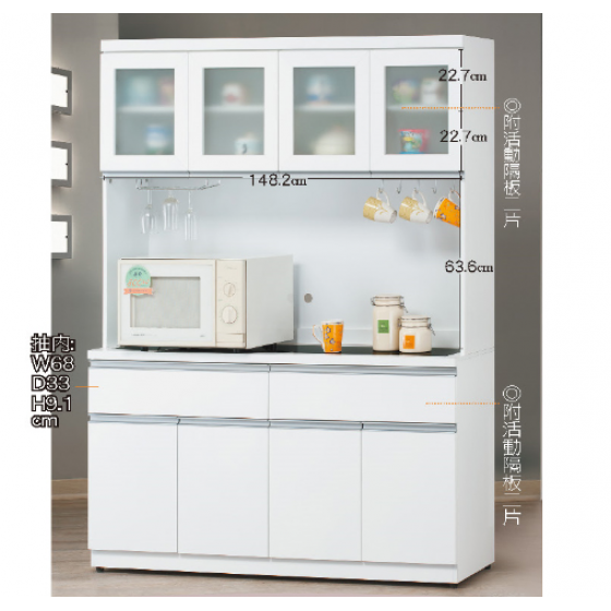 D717-3 貝拉白色5尺碗碟櫃 全組$14500