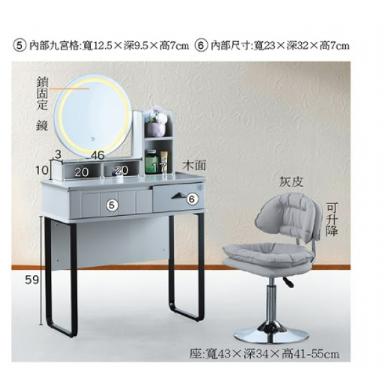 化妝台+化妝椅+化妝鏡+穿衣鏡