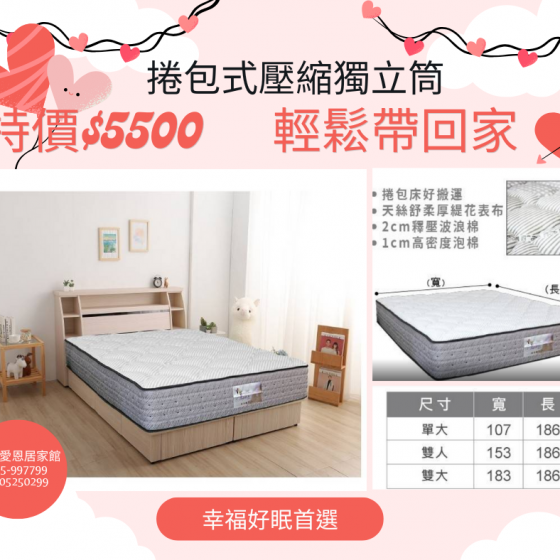 加厚高彈力獨立筒床墊3.5尺$4500 5尺$5500 6尺$6500