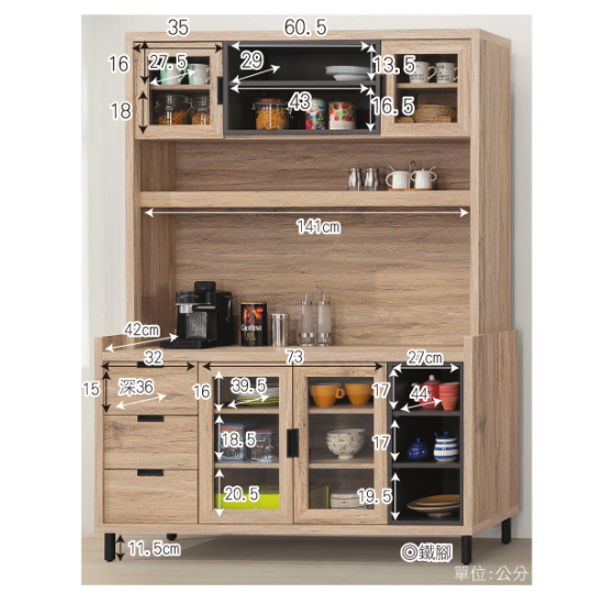 餐櫃+碗碟櫃+電器櫃+餐桌櫃