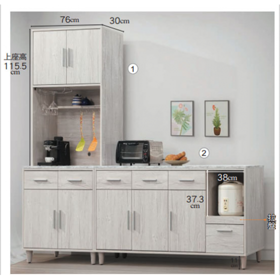 餐櫃+碗碟櫃+電器櫃+餐桌櫃