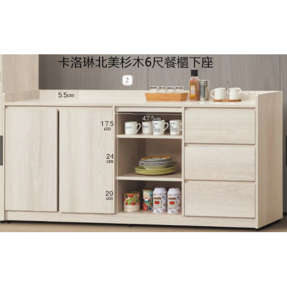D733-3 卡洛琳北美杉木6尺餐櫃下座$9000