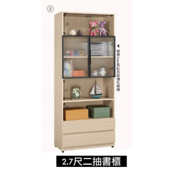 A1605-2 艾維斯2.7尺鋁門二抽書櫥 附活動隔板*1$10800