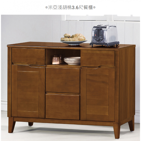 D736-4 米亞淺胡桃3.6尺餐櫃 門片內附*1活動隔板$9300