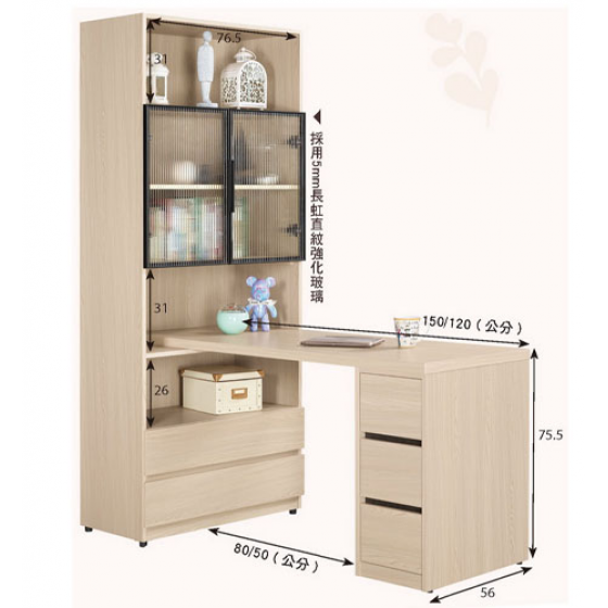 A1607-1 艾維斯5尺L型三抽書桌 附活動隔板*1$16900