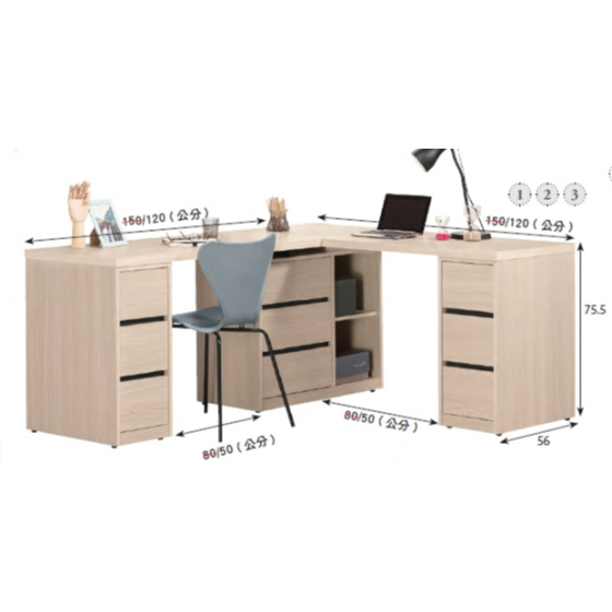 A1606-2 艾維斯5.8尺多功能組合書桌 全組 桌面4尺+5尺$17300