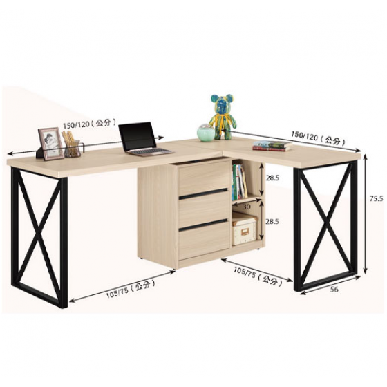 A1606-4 艾維斯6.8尺多功能組合書桌 全組 桌面5尺+5尺$12400
