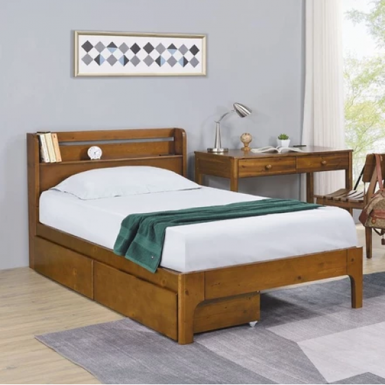 F121-1 瑞比胡桃色3.5尺床台 附插座 抽屜另計$6100