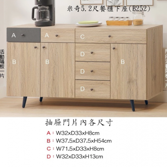 D738-2 米奇5.2尺餐櫃 玄關櫃$7800