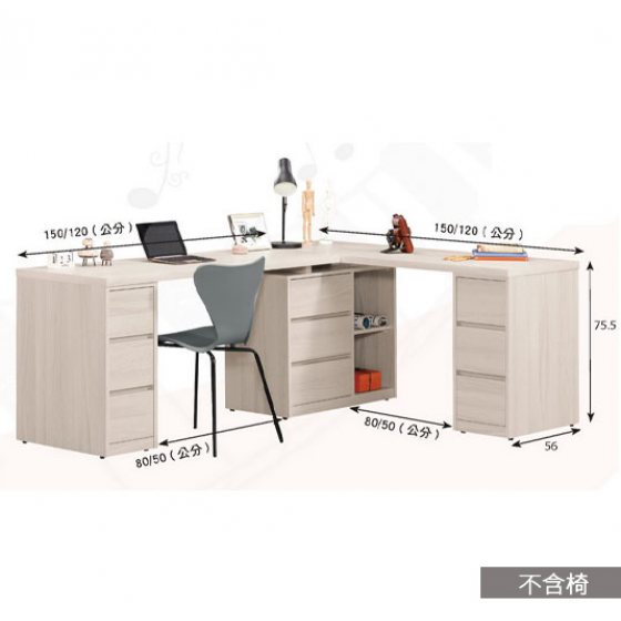 A1610-1 里斯特6.8尺多功能組合書桌 全組 桌面5尺+5尺$17700