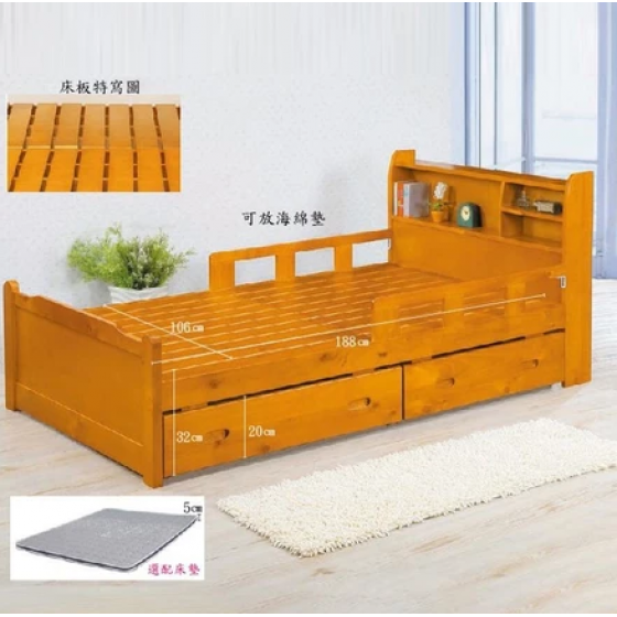 F122-6 奇哥全實木3.5尺單人床 含*2抽屜 不能調高低$8200