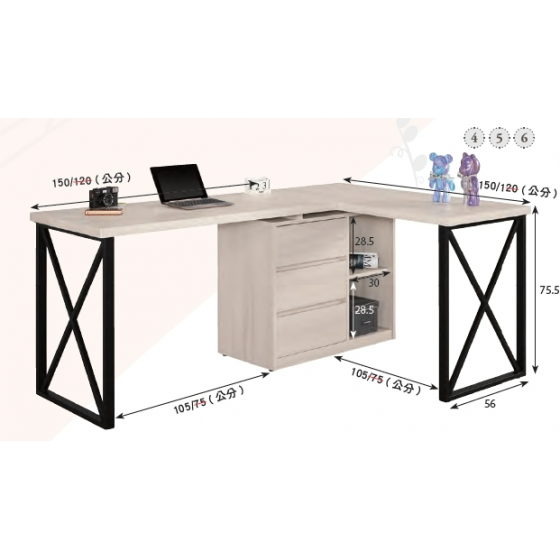 A1610-4 里斯特6.8尺多功能組合書桌 全組 桌面5尺+5尺$12400