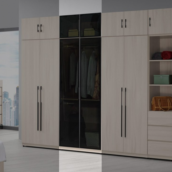 A1108-2 里斯特2.7尺被櫥式鋁框拉門衣櫥 雙吊 黑玻璃$16400