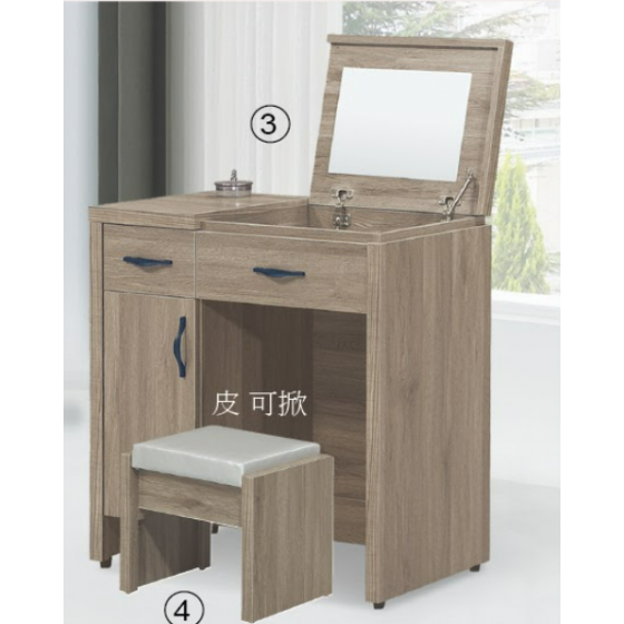 C095-3 派蒙灰橡木2.7尺掀鏡台(含椅)$5000 C096-3 派蒙淺橡木2.7尺掀鏡台(含椅)$5000 C095-4 派蒙灰橡木化妝椅$900 C096-4 派蒙淺橡木化妝椅$900