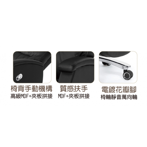 A1636-1伯妮斯牛皮辦公椅 黑色 扶手高69.5~75.5公分$12400