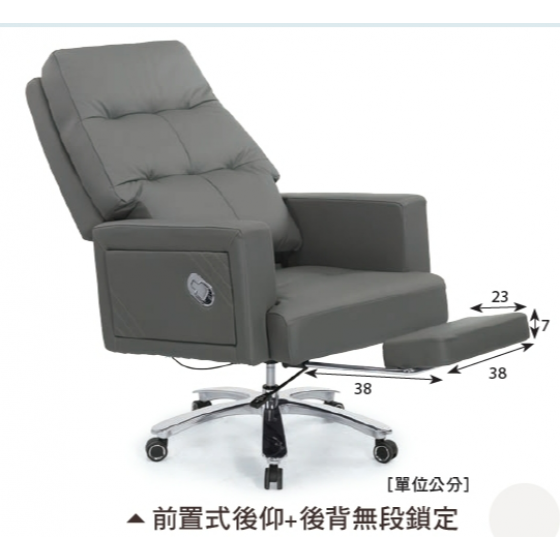 A1637-2 蒂娜牛皮辦公椅 灰色 扶手高68~74公分$11700