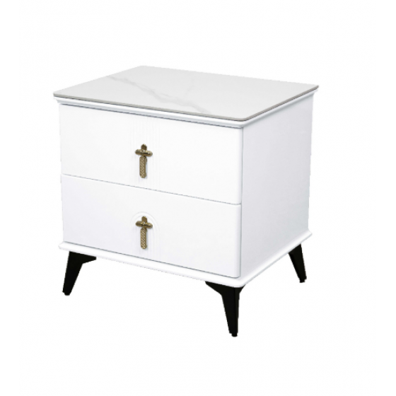 167-2 商羽白色岩板床頭櫃 單高級MDF+6mm亮面岩板+10cm防鏽烤漆黑鐵腳 (岩板特性:高強度.耐磨耐刮.耐高溫.易清潔) 五金: 抽屜採高級鋼珠滑軌 塗裝: 塗裝採用PU亮面烤漆$2300