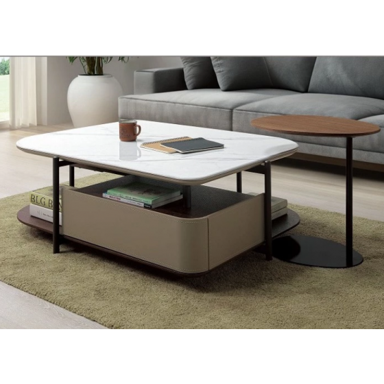 B263-01 黛米拉石面馬鞍皮大茶几$11900