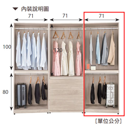 A1162-4丹尼爾2.5尺三門雙吊衣櫥 右$9900