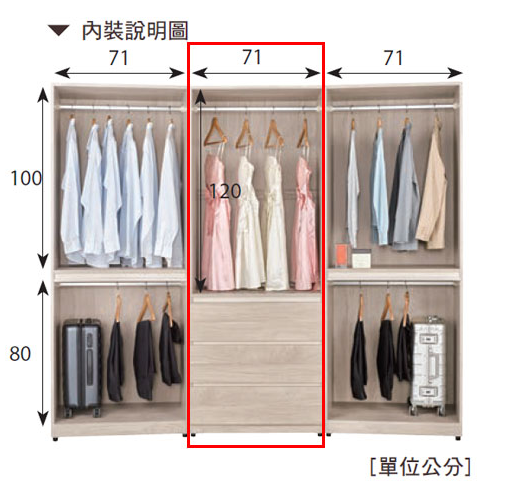 A1162-3 丹尼爾2.5尺三抽衣櫥 上下拆桶$11400