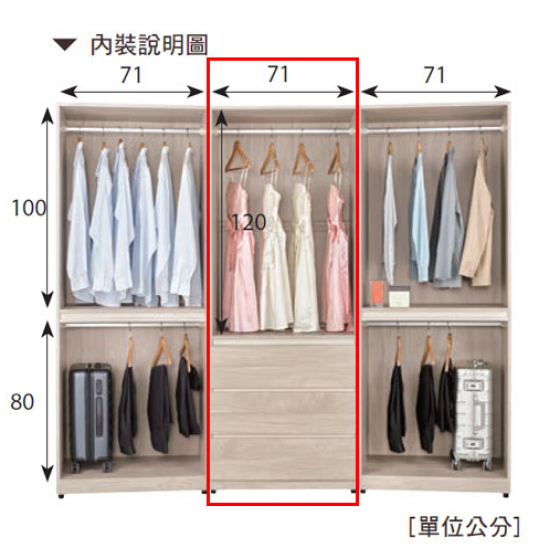 A1162-3 丹尼爾2.5尺三抽衣櫥 上下拆桶$11400