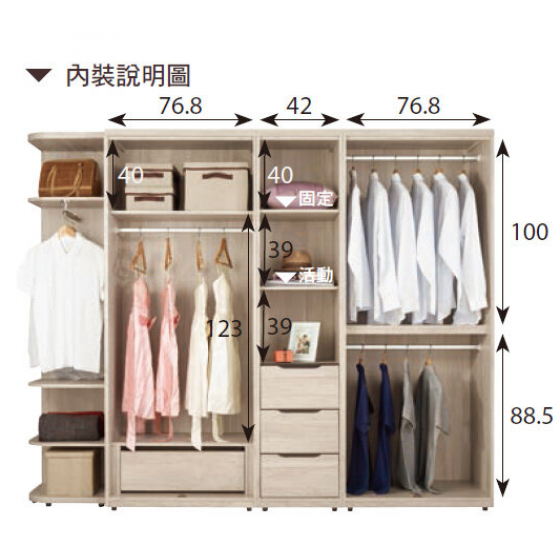 A1171-1 韋斯里8.4尺組合衣櫥 全組 附活動隔板1片、$35600