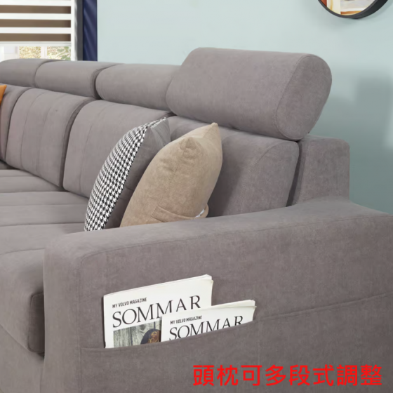 228-3 靜雅L型貓抓布沙發 全組 (坐寬257坐深56坐高44cm) (不分左右方向.恕不拆賣) (附4個小抱枕)(椅身兩側附有收納袋)$33600