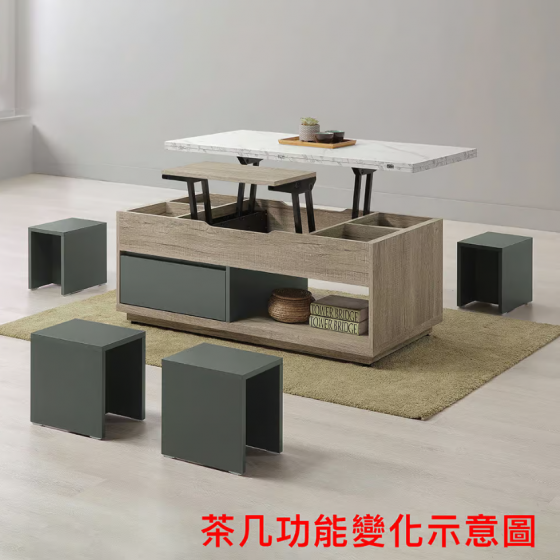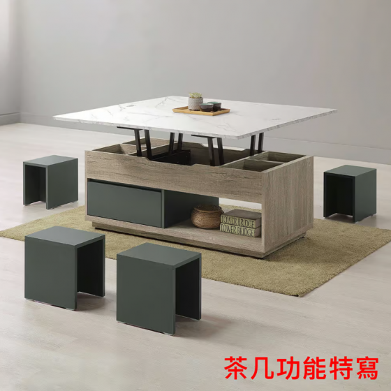 250-2 艾倫4尺多功能升降茶几 (附4張腳椅)(雙邊造型雙邊開) (腳椅尺寸:寬22x深29.5x高29cm)$10400