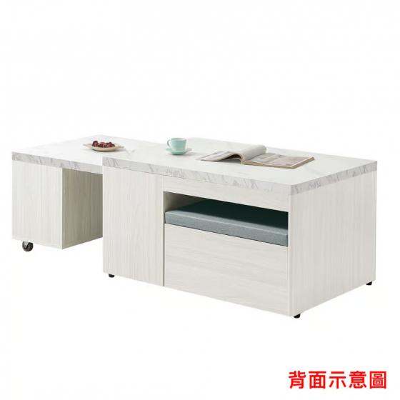 254-2 蘿拉3~4.7尺多功能伸縮茶几 (附1張貓抓皮收納型腳椅)(可移動煞車輪x2顆) (腳椅尺寸:寬55.5x深29x高30cm) (開門內無隔板)$8400