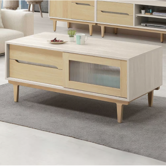 260-2 帕特4尺四抽兩門木面大茶几 (推門內無隔板)$8200