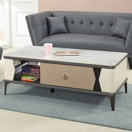 267-2 利澤4.3尺二抽岩板大茶几 (兩面單抽皆可開)$6900