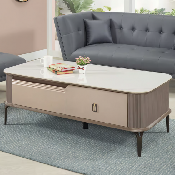 270-4 柏雅4.3尺四抽岩板大茶几 (兩面二抽皆可開)$6600