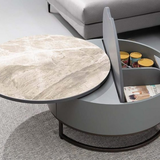 B251-02 布萊恩岩板旋轉大茶几(桌面可旋轉及掀開置物)$12600 B257-03 布萊恩岩板小茶几$5400