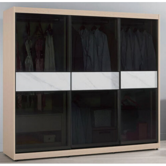 A1200-21 艾維斯7.5尺鋁框拉門衣櫥(黑玻璃) 本衣櫥可另加180度拉門式內鏡$34000