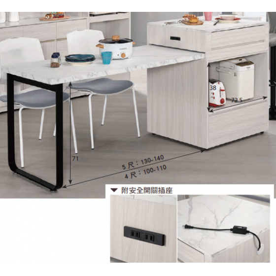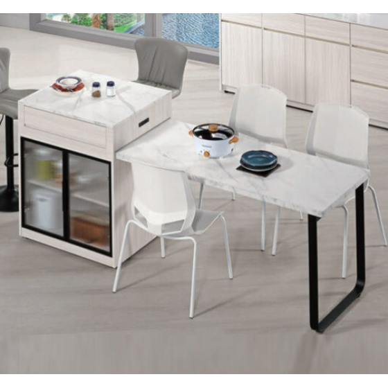 A1683-2 克萊格4尺仿石面中島型多功能餐桌櫃(A型) ⊙附活動隔板1片、 ⊙附插座、$18200
