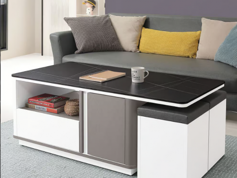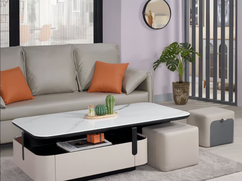 559-3 威席4.3尺科技石大茶几 (附皮凳x2,尺寸:寬37x深33x高31cm) (兩面單抽皆可開)(恕不拆賣)$10200