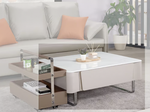 555-3 棠凌4.3尺雙抽科技石大茶几 (兩面單抽皆可開)$7700