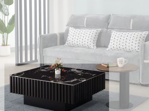 554-2 優佳4尺二抽黑金岩板大茶几 (雙邊造型.單邊抽屜使用)1.2cm 平光岩板$8900