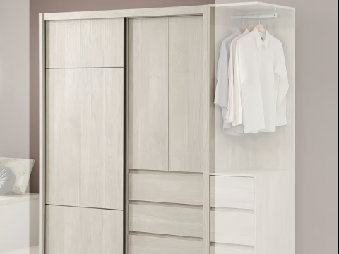 E6-7 米娜淺橡木2.5尺三抽衣櫥 不含被櫃$18900