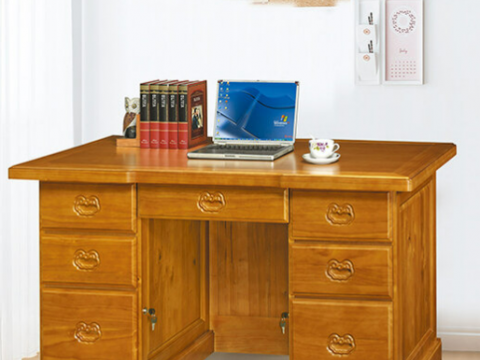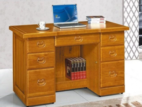 F262-2 雄獅樟木色5尺全實木書桌 含5mm強化玻璃$18700