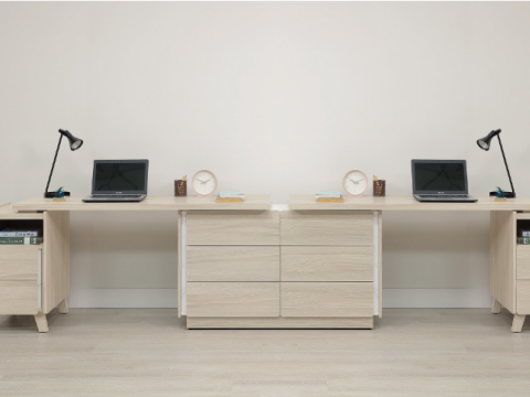 A555-02 萊米克10尺雙人書桌組 300~420公分伸縮$25000