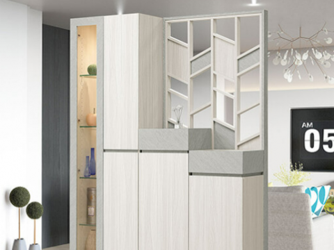631-2 黛拉4.65*6.5尺玄關組合鞋櫃 全組 ⊙展示櫃附4片8mm玻璃隔板、 ⊙4片活動木隔板、 ⊙附按鍵式黃光投射燈具、 ⊙門片採用3mm強化玻璃、 ⊙屏風櫃附7片活動隔板+2個透氣孔、$23000