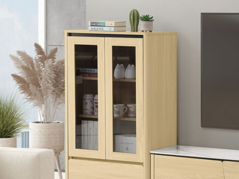 600-6 燕麥2.62尺大收納櫃 (附2片活動隔板) (上面開門為5mm長虹玻璃)$6400