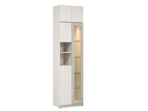 600-5 燕麥2尺展示櫃 (附2片8mm活動玻璃隔板.2片活動木隔板) (附線上開關LED燈)(上面左開門為5mm長虹玻璃)$9700