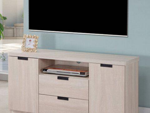 620-2 卡亞白梧桐色4尺電視櫃 ⊙附1個電線孔、 ⊙左右開門內各附1片活動隔板、$4600